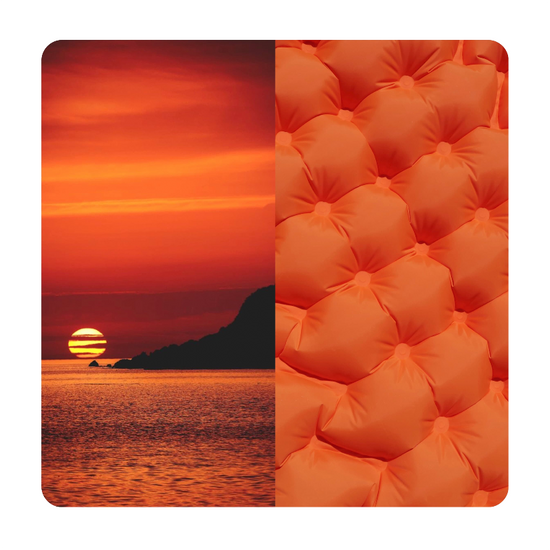 • COZIYA Orange ist von den herrlichen Sonnenuntergängen über den Dünen von Pilat inspiriert. Diese warme, lebendige Farbe gibt Ihnen die Energie, alle Ihre Outdoor-Abenteuer zu genießen, sei es am Strand, in den Bergen oder bei jedem anderen Abenteuer. Mit dieser orangefarbenen Matratze haben Sie immer noch das Gefühl, ein unvergessliches Erlebnis unter der warmen Sonne der Westküste zu genießen.